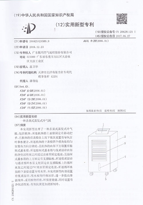 十多年殺菌式蒸發(fā)式冷氣機專利