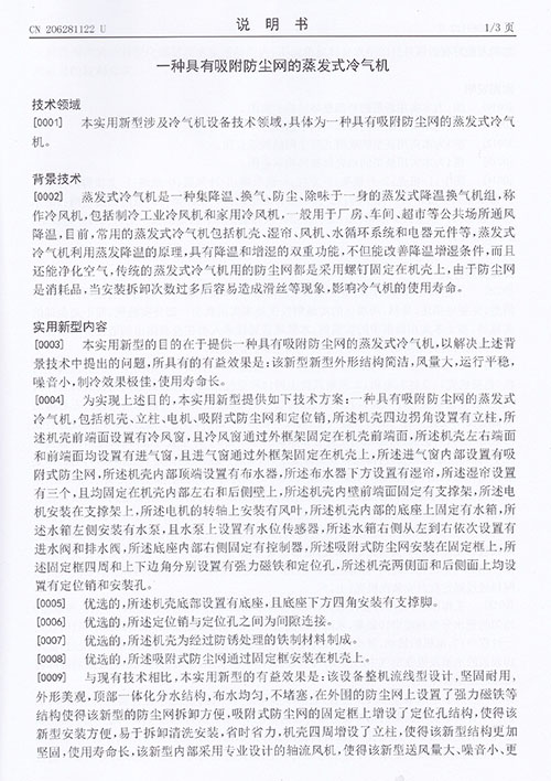 十多年具有吸附塵網(wǎng)的蒸發(fā)式冷氣機